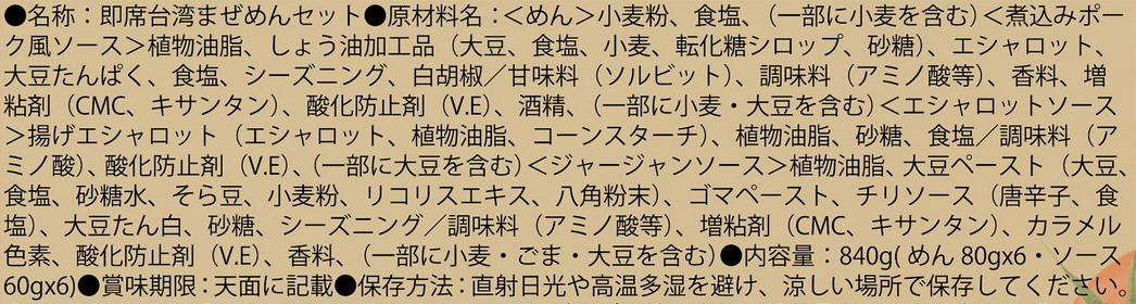 Taiwanese Squiggly Noodle 台湾ねじれ麺 台湾の伝統的な天日干し製法で丁寧に作り上げた麺と、台湾の味わいをそのまま再現した3種類のソースが楽しめる逸品です。 内容量 麺80g*6パック/煮込みポーク風味ソース60g*2パック/エシャロット味ソース60g*2パック/ジャージャー味60g*2パック 重量 840g(麺80g*6パック、ソース3種60g*2パック) 保存方法 常温保存 保存期限 16ヶ月 産原国 台湾 成分表示 << 前のページに戻る